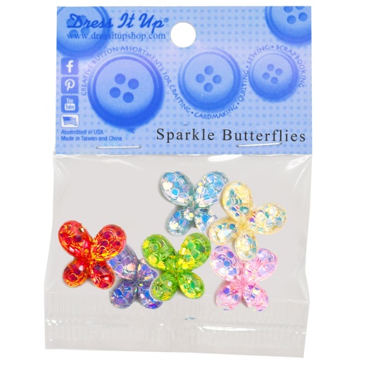 Dress It Up Embellishments Sparkle Butterflies Tiny embellishments for adding dimension to all of your scrapbook pages, cards, invitations and craft projects. Button embellishments come in a variety of shapes and sizes and some even feature glitter. Size, shape, color and number of embellishments per package varies by theme. Comes in a variety of designs. Each sold separately. WARNING: Choking Hazard- Small Parts. Not for children under 3 years. Imported.