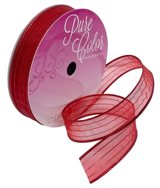 Morex Ribbon Harmony 5/8"X7yd Red Harmony is a sheer ribbon with metallic accents that combines elegance and sophistication, featuring a lightweight, translucent fabric that adds a delicate touch to any project. The shimmering metallic threads interwoven throughout create a luxurious sheen, making this ribbon perfect for special occasions such as weddings, holidays, or upscale events. Its versatility allows it to be used for gift wrapping, flower arrangements, or as an eye-catching embellishment in crafts. Easy to work with, this ribbon drapes beautifully and ties effortlessly, making it a must-have addition to your crafting supplies.