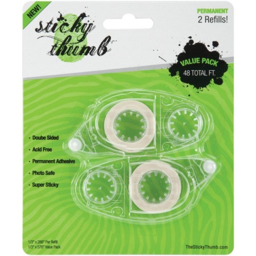 Sticky Thumb Permanent Adhesive Runner Refills 2/Pkg .3"X8yd Each, For Use In RUN000 STICKY THUMB-Sticky Permanent Adhesive Refills. Use this refill in your Sticky Thumb Adhesive Runner/Dispenser (not included). It's permanent, acid free, and photo safe. This package contains two 8 yard refill cartridges. Imported.