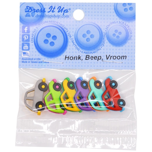 Dress It Up Embellishments Honk/Beep/Vroom Tiny embellishments for adding dimension to all of your scrapbook pages, cards, invitations and craft projects. Button embellishments come in a variety of shapes and sizes and some even feature glitter. Size, shape, color and number of embellishments per package varies by theme. Comes in a variety of designs. Each sold separately. WARNING: Choking Hazard- Small Parts. Not for children under 3 years. Imported.
