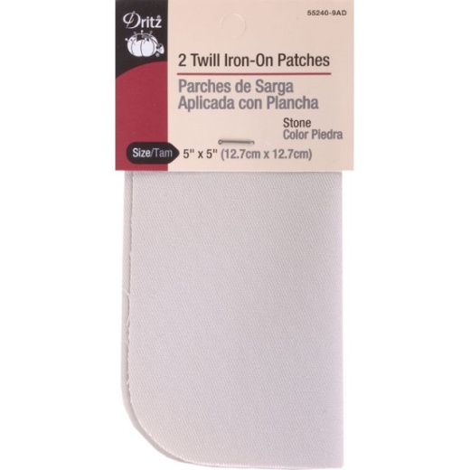 Iron-On Patches 5"X5" 2/Pkg Stone Twill DRITZ-2 5x5 iron-on patches. Use patches to repair a tear, worn area, or hole. Washable and dry cleanable. For mending, reinforcement, and decorative applications.