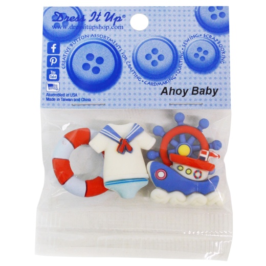 Dress It Up Embellishments Ahoy Baby Tiny embellishments for adding dimension to all of your scrapbook pages, cards, invitations and craft projects. Button embellishments come in a variety of shapes and sizes and some even feature glitter. Size, shape, color and number of embellishments per package varies by theme. Comes in a variety of designs. Each sold separately. WARNING: Choking Hazard- Small Parts. Not for children under 3 years. Imported.