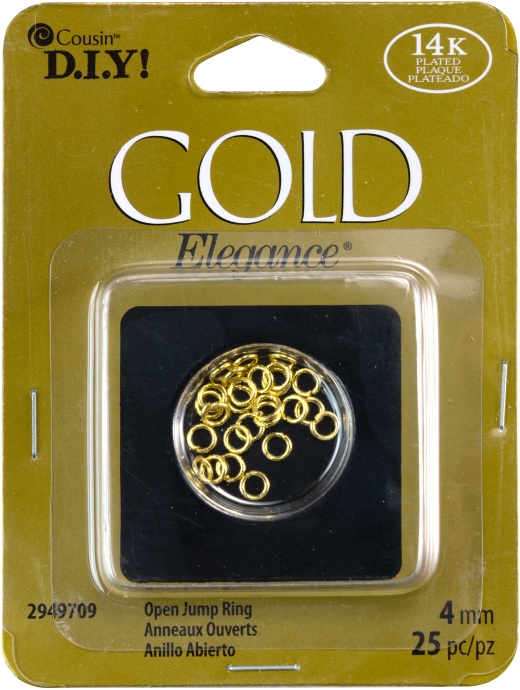CousinDIY 14k Plated Gold Elegance Beads & Findings Open Jump Rings 4mm 30/Pkg Gold Elegance presents the richness of genuine 14K gold plating in the form of elegant beads and findings! Innovative double blister packaging highlights the dazzling quality of beads inside! Imported.