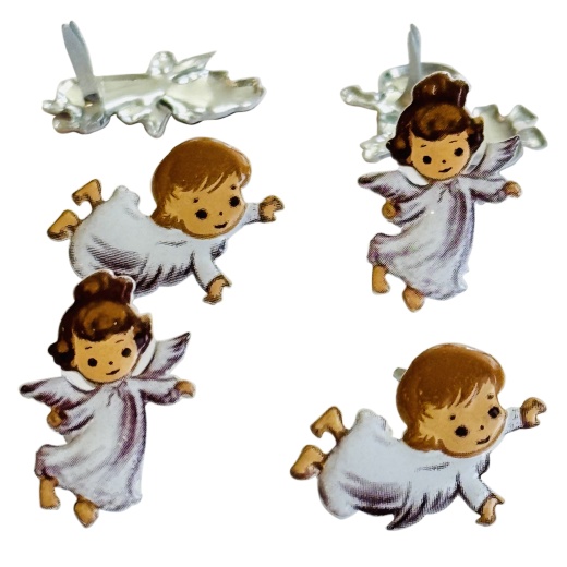 Eyelet Outlet Shape Brads 12/Pkg Angel These assorted brads from Eyelet Outlet are great for scrapbook pages or as a quick embellishment on cards. To apply the brads, poke the brad prongs through your projects. Turn the brad over and bend back the prongs. No tools needed to apply brads to your scrapbooking page or card. This package contains 12 brads. Available in a variety of styles, each sold separately. Imported.