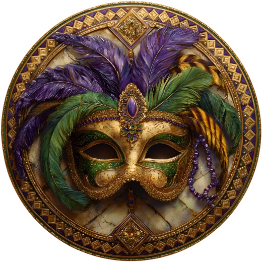 Mardi Gras Gold Masquerade Mask With Feathers And Geometric Border Accent Sign - Made In Usa
