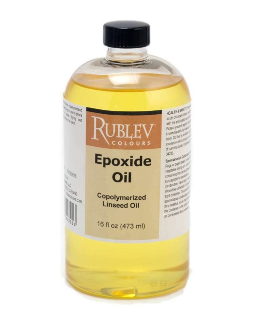UseMost oil painting mediums in addition to a drying oil, such as linseed oil, include resins that consist of polymers. Many polymers, however, are in dispersions or are solutions of polymers because they are prepared and used as a part of dispersions or solutions of polymers in organic solvents such as mineral spirits. Most of these oil painting mediums include thermoplastic polymers, such as alkyds, that require the use of organic solvents which often are toxic and/or subject to regulation. Epoxide Oil is a 100% solids oil, that is it does not contain organic solvents, and has properties similar to that of alkyds and hence can be used in place of alkyd painting mediums.