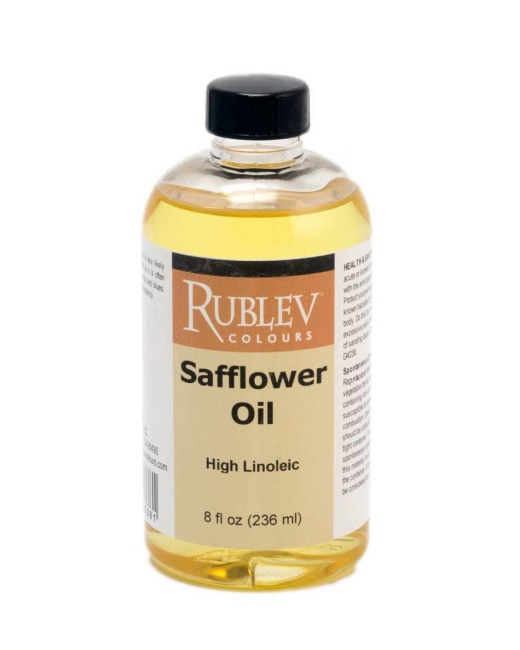 Our Safflower Oil is expeller-pressed from safflower oilseeds (Carthamus tinctorius) cultivated in North America and lightly refined. It is a clear, pale yellow oil that is odorless. As it yellows less than linseed oil it is good for making pale oil colors. Safflower oil dries faster than poppy seed oil and gives oil color paste better texture.