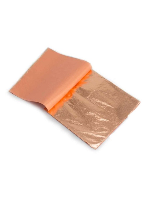 Our copper leaf is made in the standard European size of 140 x 140 mm (5.5 x 5.5 inches) and is available in units called "books," each book containing 25 leaves. For volume discounts order one or more boxes of composition leaf; each box contains 20 books or 500 leaves and covers 105 sq. ft. without waste or overlap. The percentage of waste is based on the complexity of the object and the gilder's expertise in laying leaf. If the surface is very ornate with deep crevices it will take more leaf than the same size area of a flat surface.