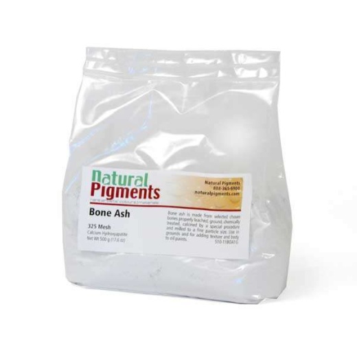 Add bone ash to oil colors and mediums to create textural and bodying qualities in oil paint without affecting the color. Since bone ash has little color in drying oil, it can be added to oil paint without affecting the color temperature.