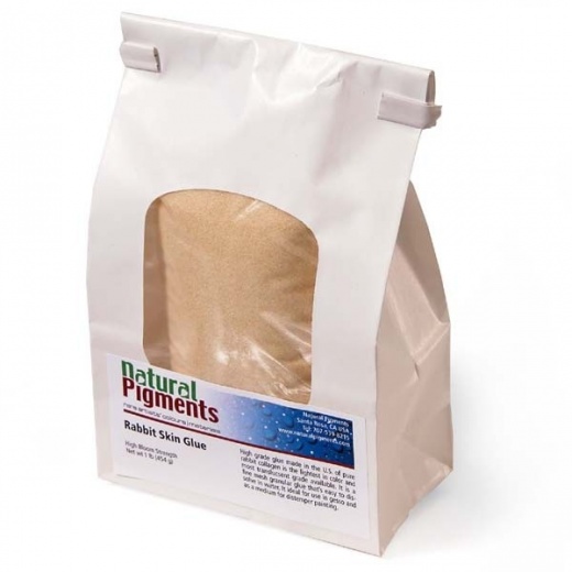 This is a high-grade glue made in the U.S. It is a fine mesh granular glue that is easy to dissolve in water. The high-quality grade means that it is the lightest in color and most translucent glue available. This makes it ideal for use in gesso and as a medium for distemper painting.