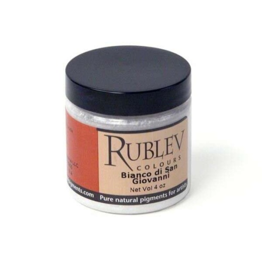 SourceBianco di San Giovanni is a pigment of inorganic, natural mineral origin from limestone (calcium carbonate) deposits. Not to be confused with simple lime white or chalk, Bianco di San Giovanni, as Cennino Cennini reports, is dried lime which is reduced to powder and then immersed in the water for eight days that is changed each day. It is then made into small cakes and left to dry in the sun. It is then grounded finely.