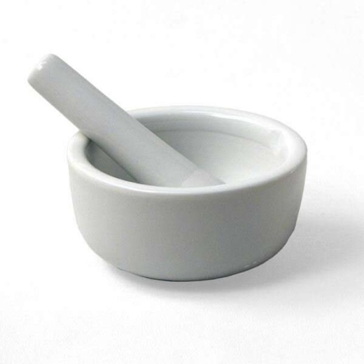 Wash porcelain mortar and pestle with warm water and detergent or soap.