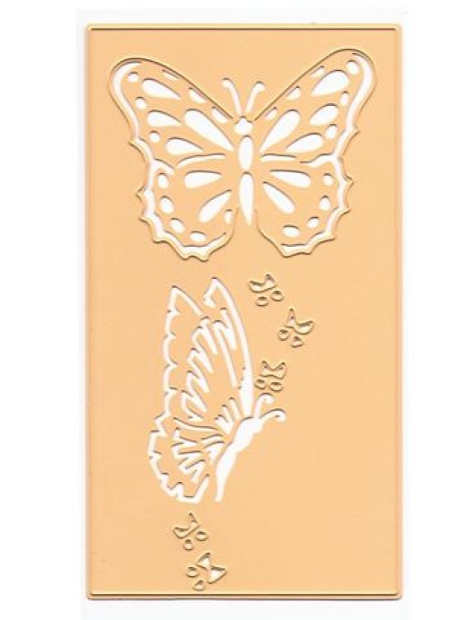 Joy Crafts butterfly die cuts out the rectangle shape as well as the intricate butterfly wing details. The larger butterfly is cut so that you can fold the wings up to give your card a 3 dimensional effect. Size: approx. 2 3/4" x 5"
