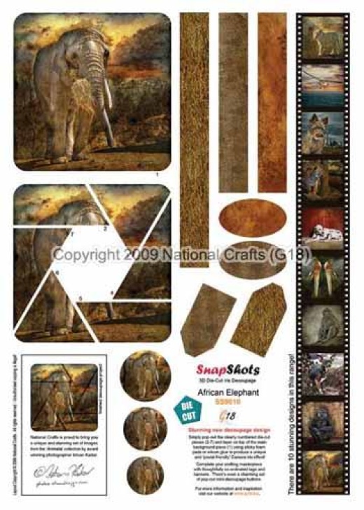Each sheet in this wonderful set is carefully crafted to provide you with an array of design possibilities. With beautifully detailed banners and tags, you'll be able to add a touch of whimsy and sophistication to your scrapbooking pages, photo albums, or even DIY projects. The 3D precut design ensures that your creations will pop with dimension and texture, making them truly one-of-a-kind. Whether you're a seasoned scrapbooker or an enthusiastic crafter, the G18 Snapshots African Elephant set is sure to inspire your creativity and take your projects to the next level.