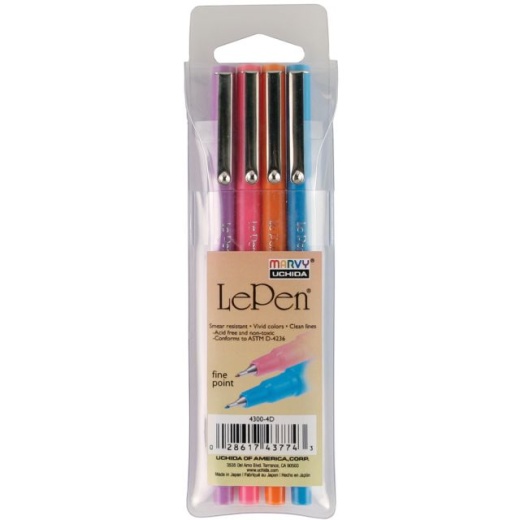 Are you looking for the perfect pens to use for everyday writing, art, scrapbooking, or other paper crafting projects? Look no further than the Le Pen .03Mm Point 4/Pkg! These fine tip pens are designed to provide precise lines and details, making them ideal for a variety of applications. With their smear-resistant ink and acid-free, non-toxic formula, you can trust that your creations will turn out beautifully and safely.