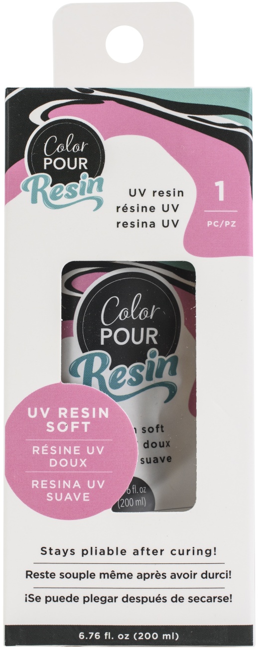 American Crafts Color Pour UV Resin Soft 6.76oz Discover new ways to be colorfully creative with Color Pour Resin! This resin cures soft under the Color Pour Resin Light (sold separately) and is perfect for all sorts of projects. It cures in just 2 minutes, which is faster than epoxy resin. Combine UV resin with mix-ins like dyes, pigments, and embellishments to customize. This package includes one container of UV Resin Soft. Imported.