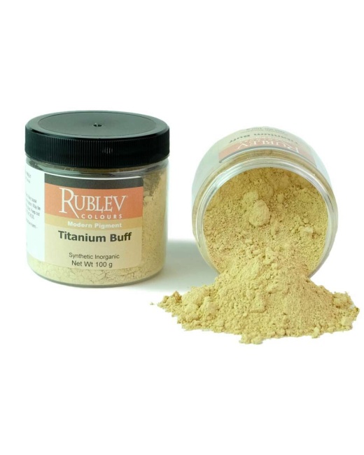 Permanence and CompatibilityBuff titanium is a synthetic white pigment rated by the American Society of Testing and Materials (ASTM International) as lightfastness category I, which is the highest lightfastness. It is compatible with all pigments and is resistant to acids and alkalis.