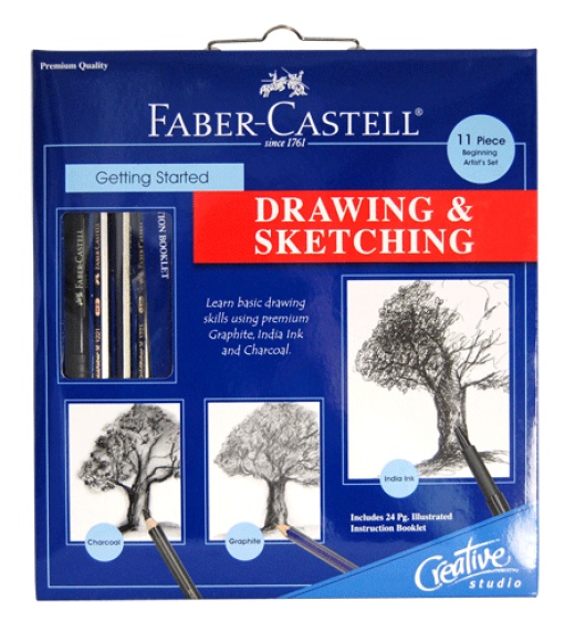Learn basic drawing skills using premium Graphite, India Ink and Charcoal with the Faber-Castell Getting Started Drawing and Sketching Set.