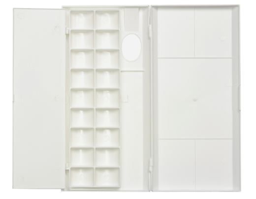 Whether you're painting en plein air, working on location, or simply prefer the flexibility to create anywhere, this palette has got you covered. Its compact size belies its impressive capacity, allowing you to bring a full range of colors on the go. And when you're finished painting, the palette folds up neatly, protecting your paints and brushes from damage during transport.