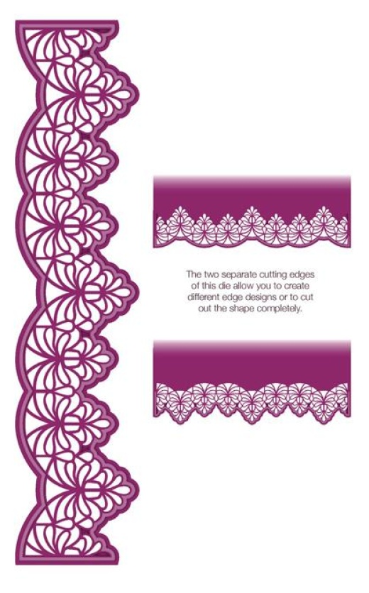 - 3 delicate dies with fluid shapes for beautiful borders, edges, and decorative accents