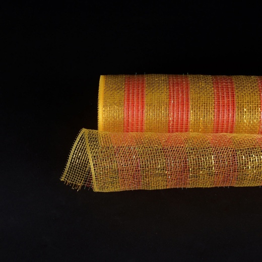 Red With Gold - Poly Deco Mesh With Laser Mono Stripe - ( 21 Inch X 10 Yards )