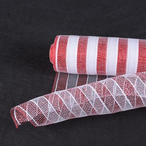 White With Red Lines Metallic Stripes Mesh Wreath Material - 10 Inch X 10 Yards