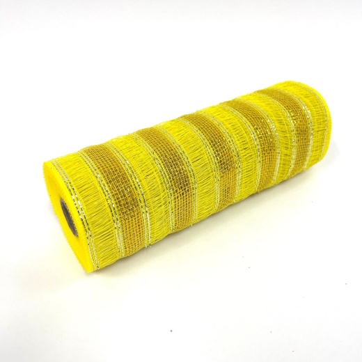 Yellow Deco Mesh Eyelash Metallic Stripes - 10 Inch X 10 Yards